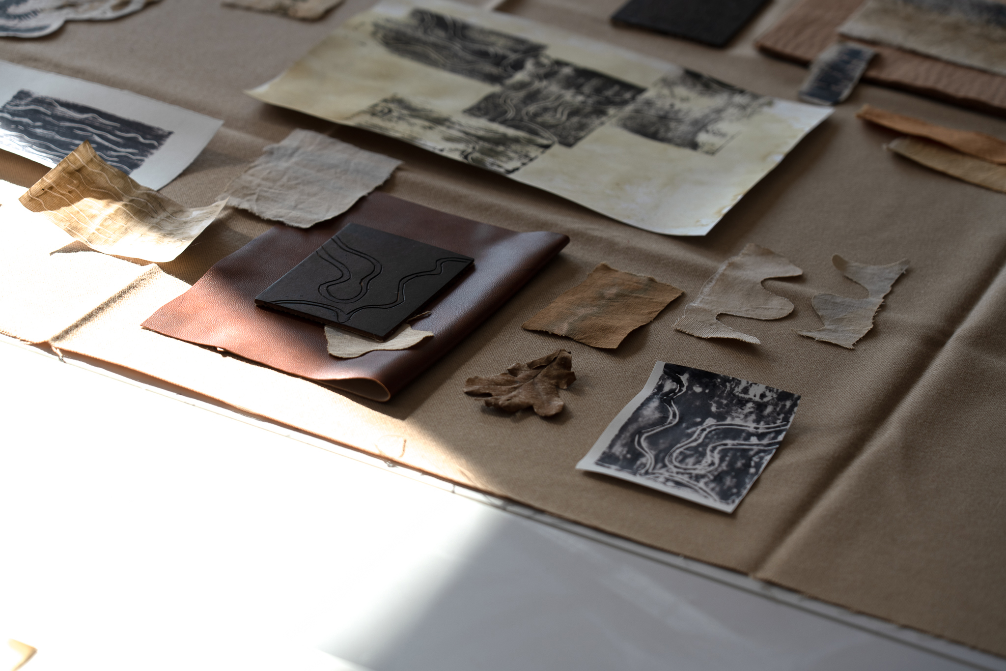 Some parts of the tree are unsuitable for these uses, and are therefore ground and compacted in the form of forestry chips used for heating, mulching or animal bedding. The aim of the workshop was therefore to make the most of the specific characteristics of Basque tree bark, which is ground together into forest chips, by revealing the different colors that can be obtained through natural dyeing and printing.