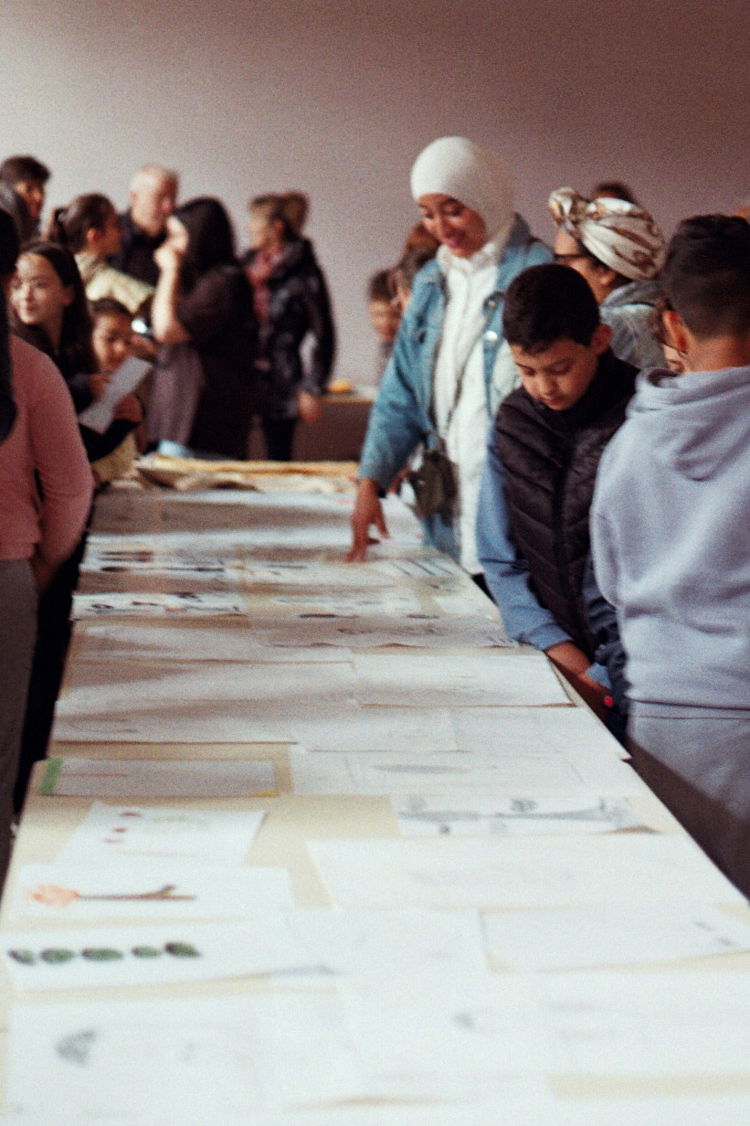 En petits groupes, chacun est venu imprimer sa pièce à sa manière. La corde à linge de la fenêtre s’est lentement transformée en tringle à rideaux, révélant la transparence des motifs et les histoires de leurs dessins en filigrane.