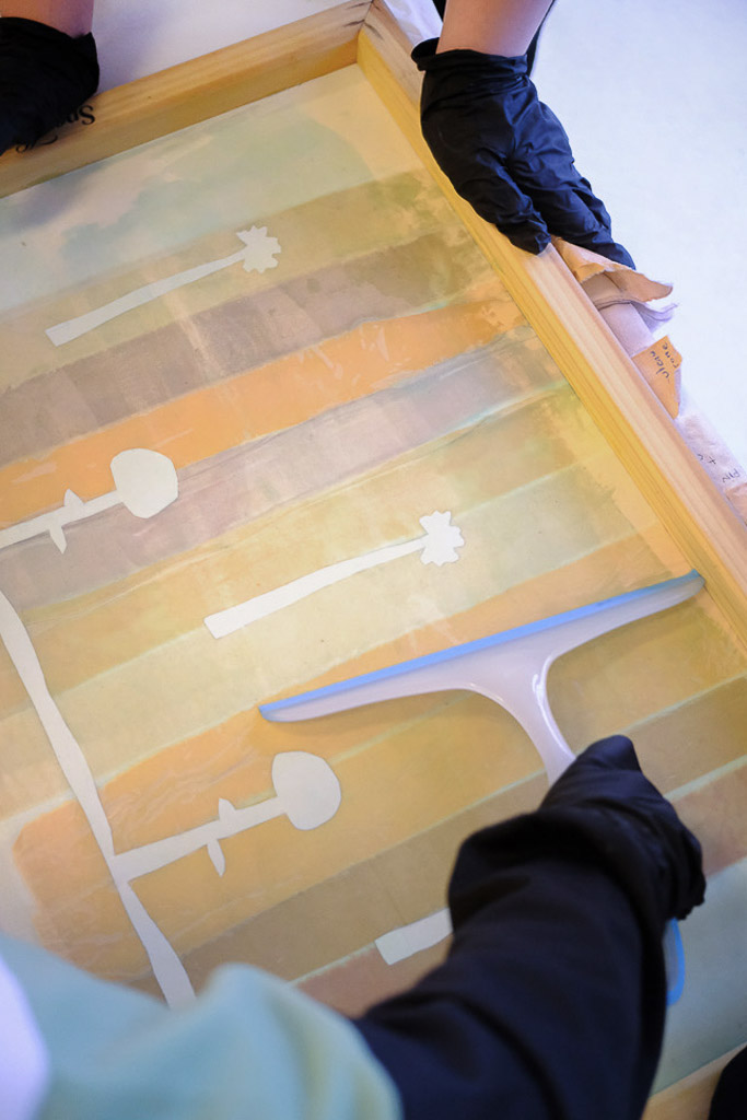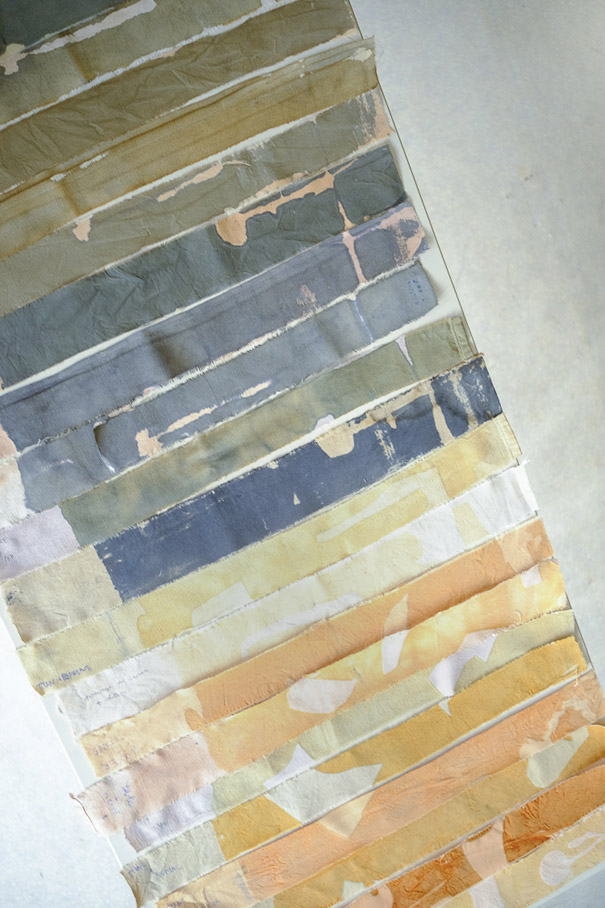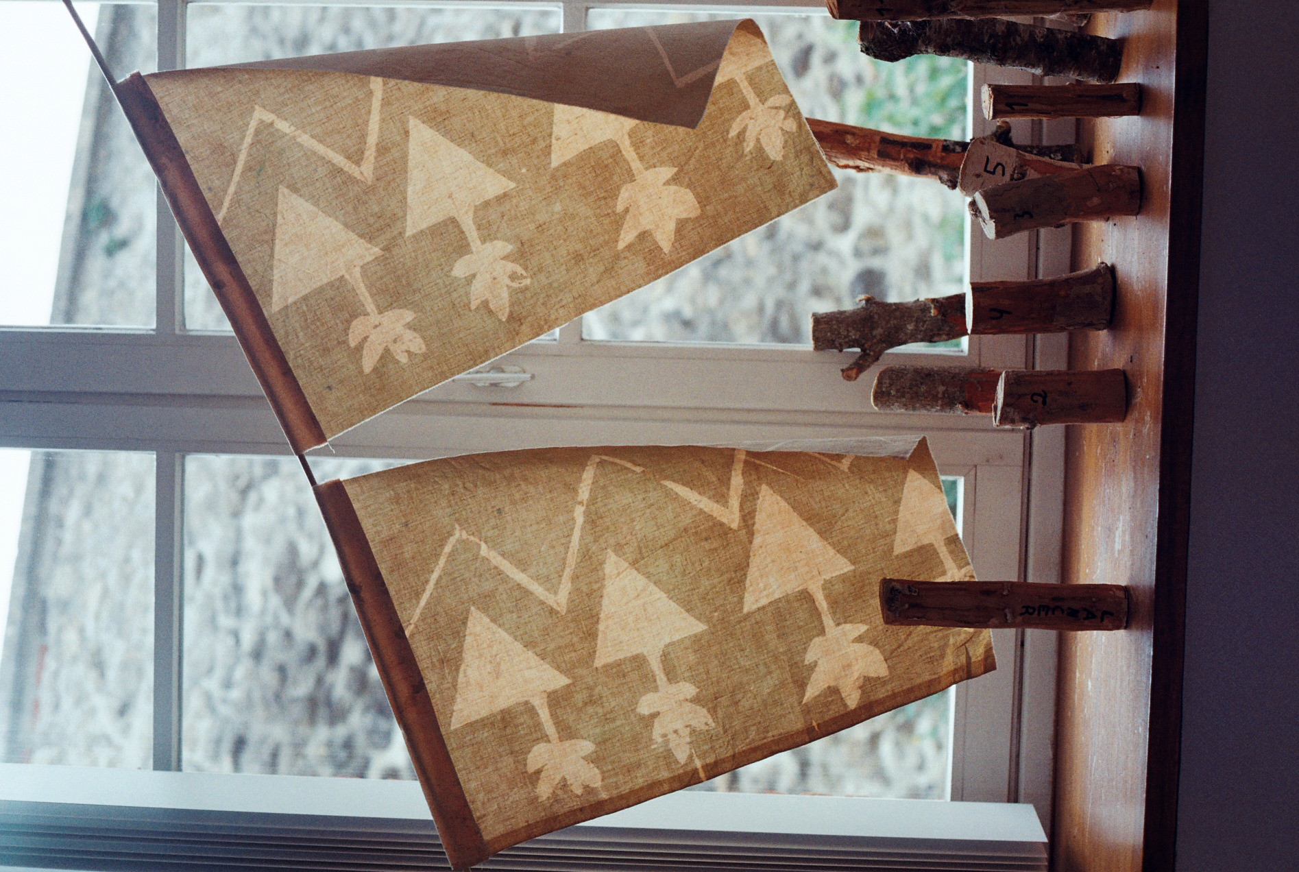 Les échantillons sérigraphiés - impressions aux mordants métalliques sur des tissus teints avec les écorces issues des élagages - ont constitué un nuancier de couleurs dans lequel ils ont pioché pour définir leur identité.