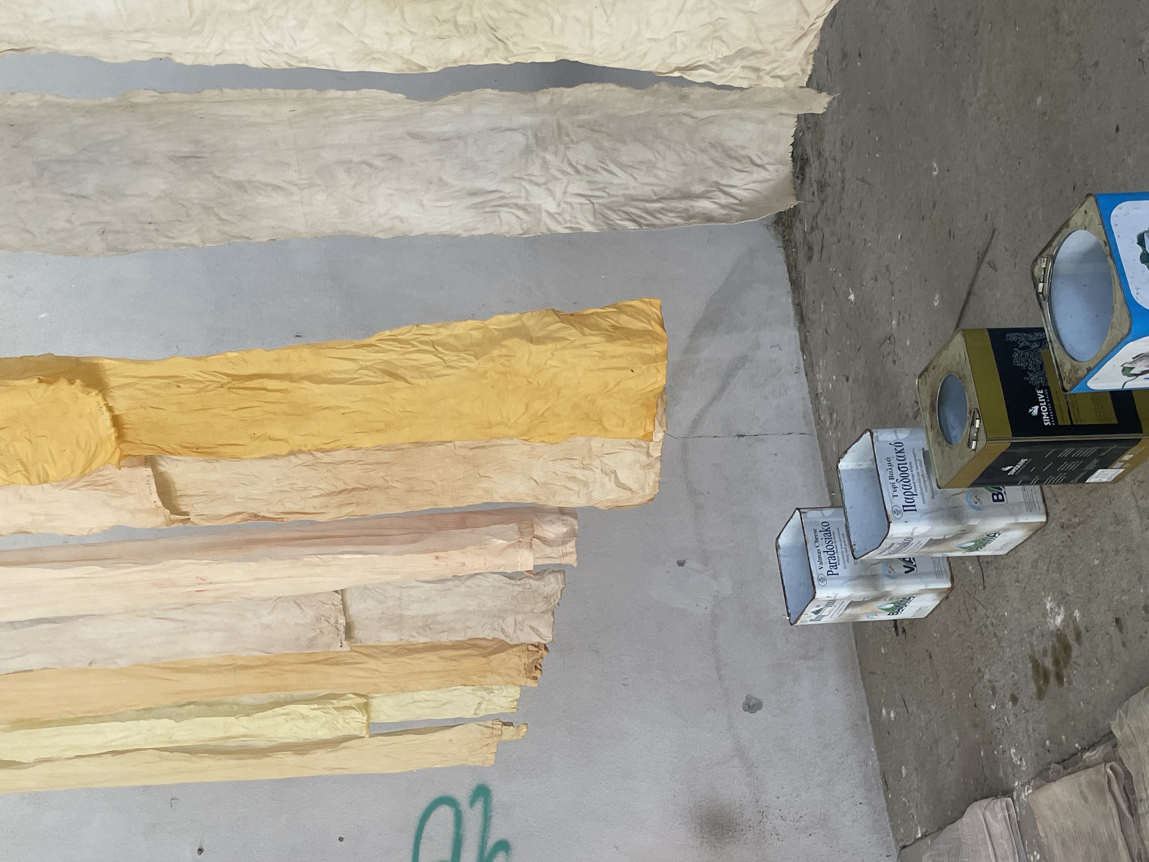 With the dyed fabrics, I created a textile installation in the space and left a collection of ribbons to be hung on the roof for the summer festival.