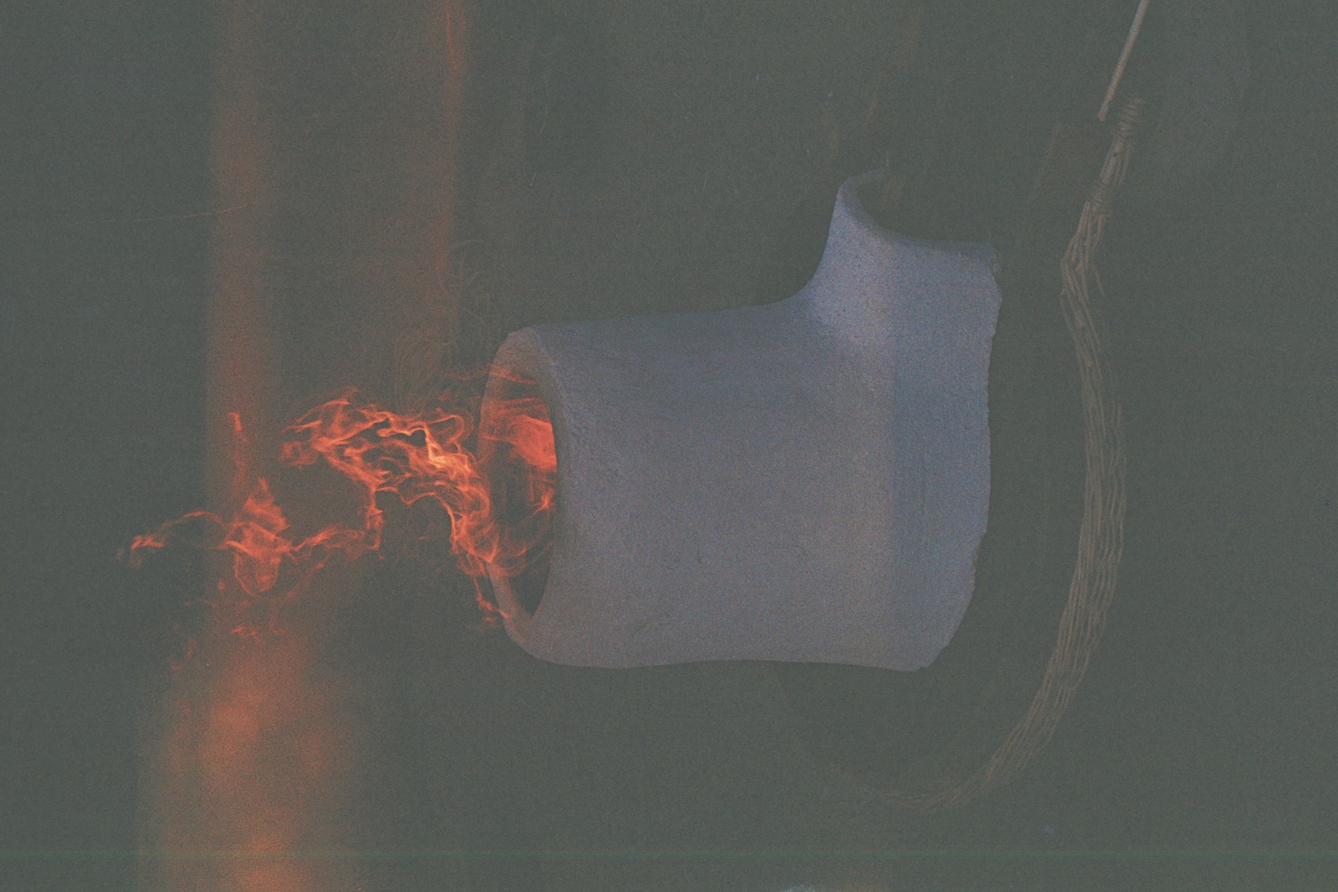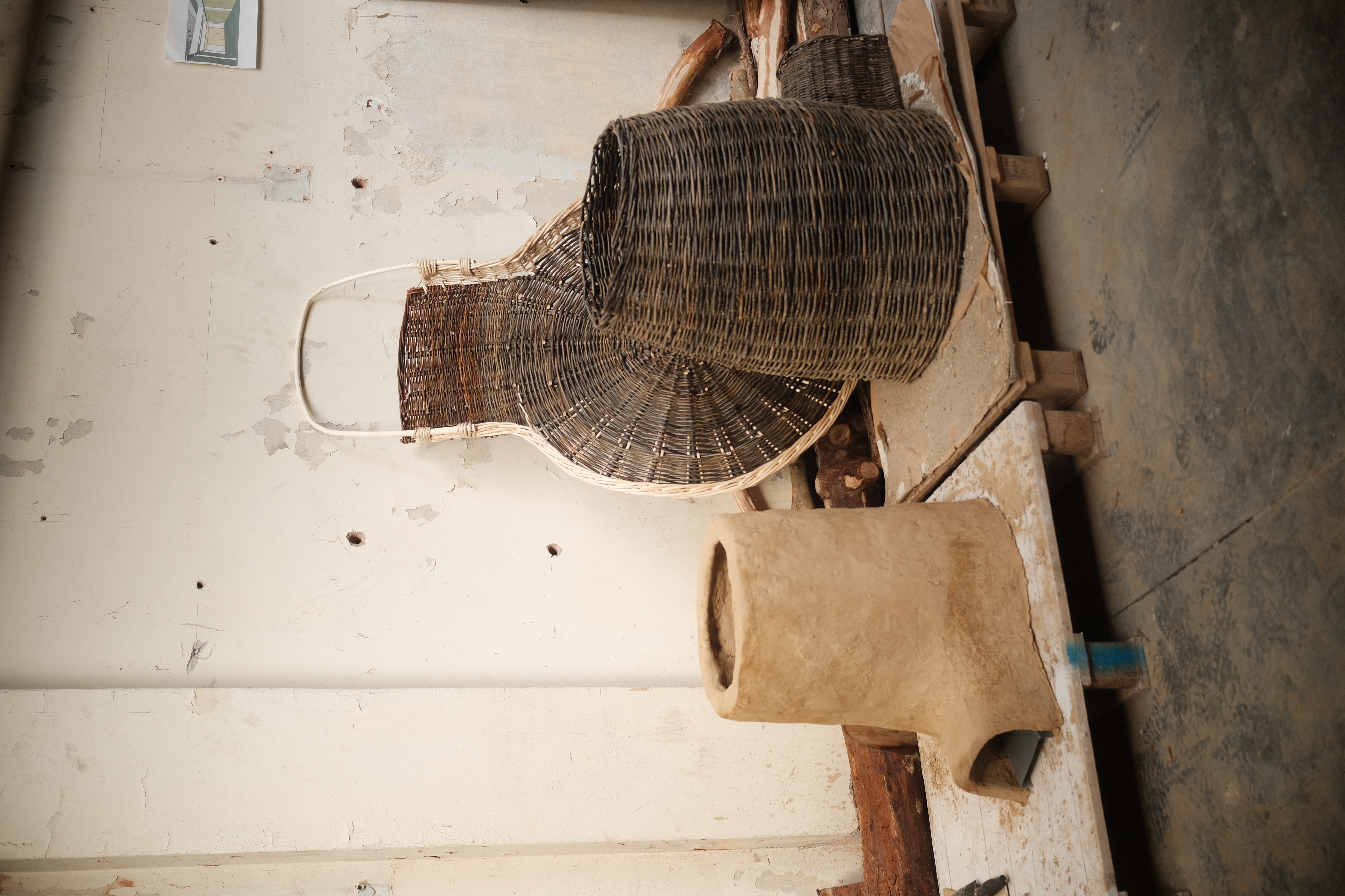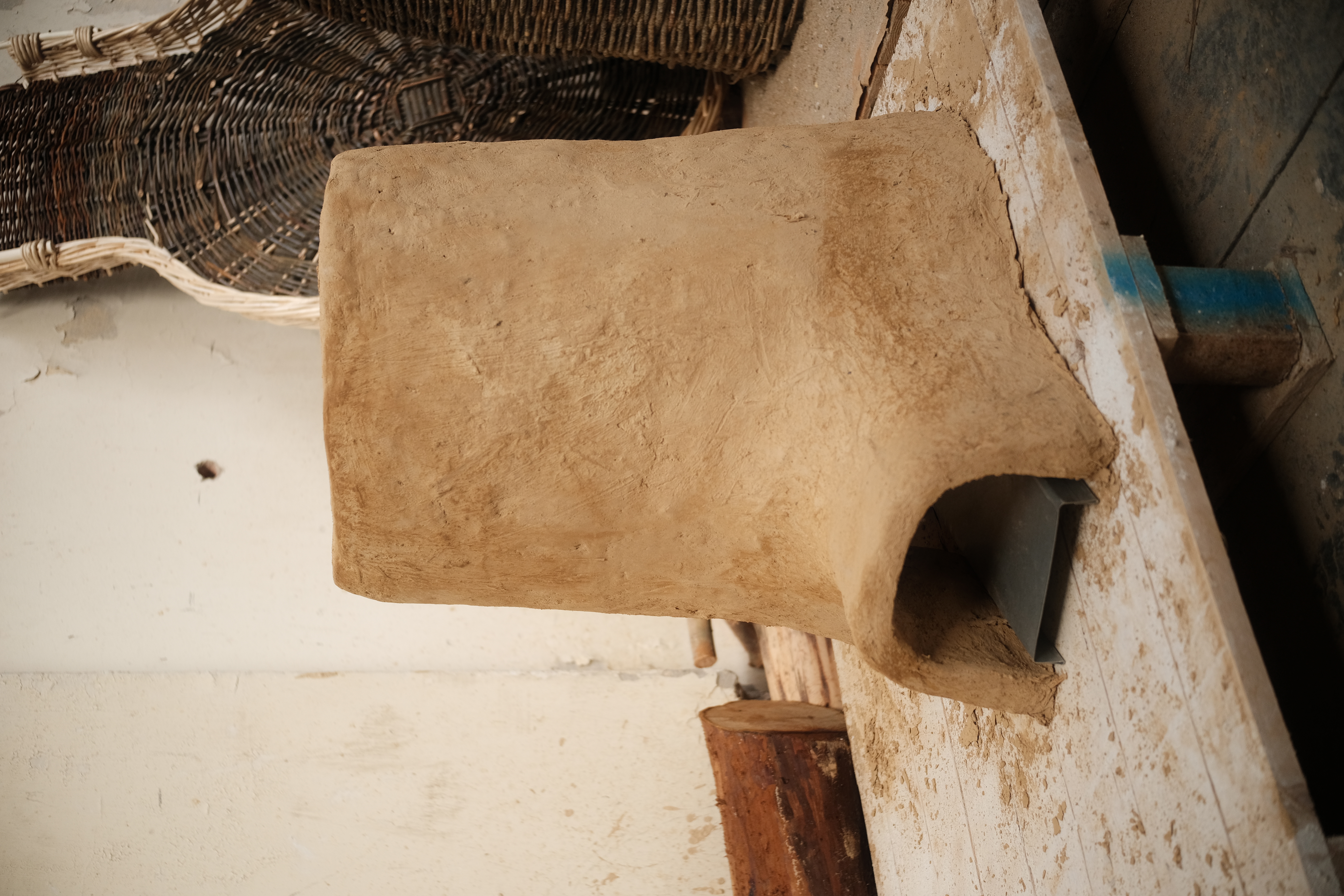 The mould for the rocket stove was developed with Jeanny Bouwen, a willow wicker artisan based in Flanders. We designed and made the rolling basket for the base of the rocket stove.