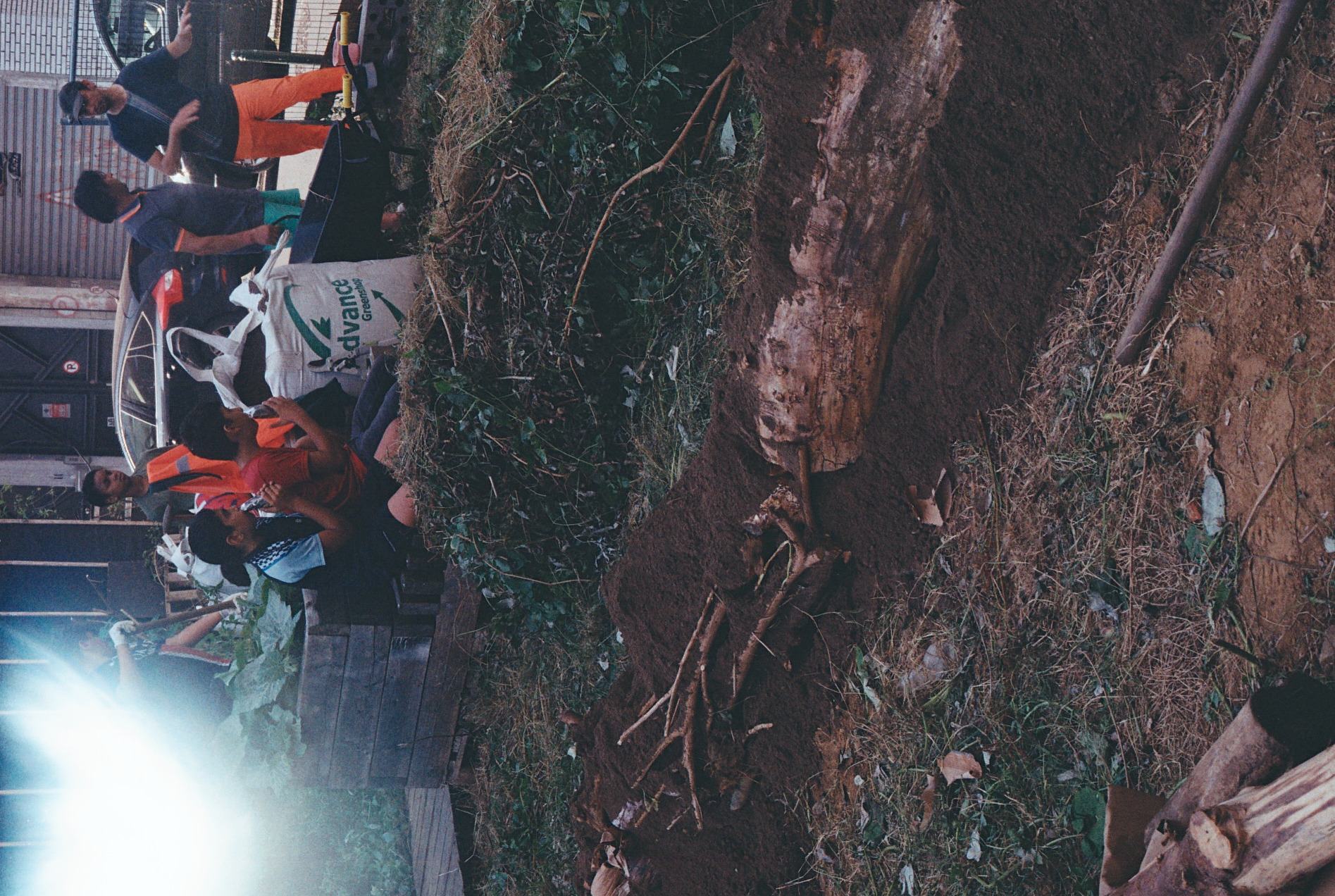 Mon rôle consiste à l’aménagement paysager du terrain et à l’enrichissement du sol, en prévision de la culture d’arbres fruitiers, d’annuelles et de vivaces. Lors de la première année, nous y avons installé des buttes de culture forestière à base de bois mort de la commune de Molenbeek, planté une partie jardin-forêt composé de fruitiers atypiques ou amenés par les habitant.e.s et installé une micro-pépinière. Nos chantiers de l’année 2026 gravitent autour de la construction d’une serre, d’un cabanon à outils, d’une mare et d’une cuisine extérieure.